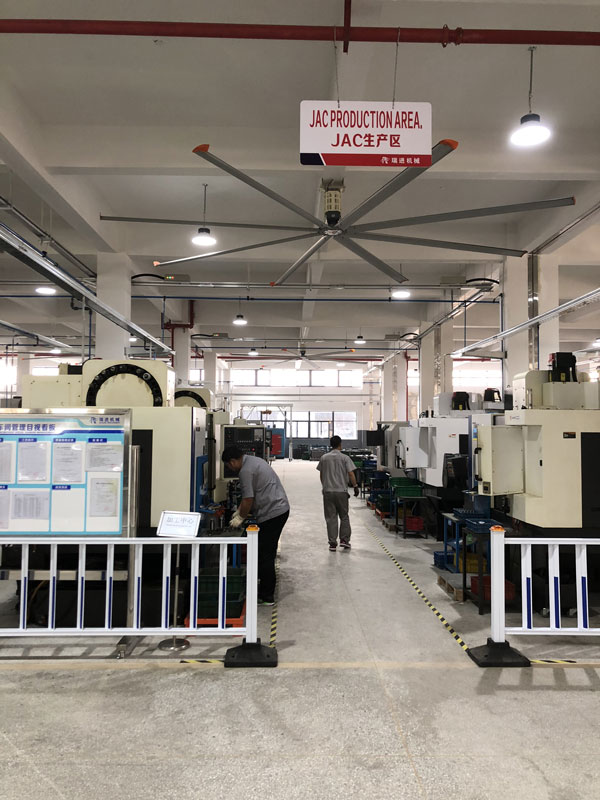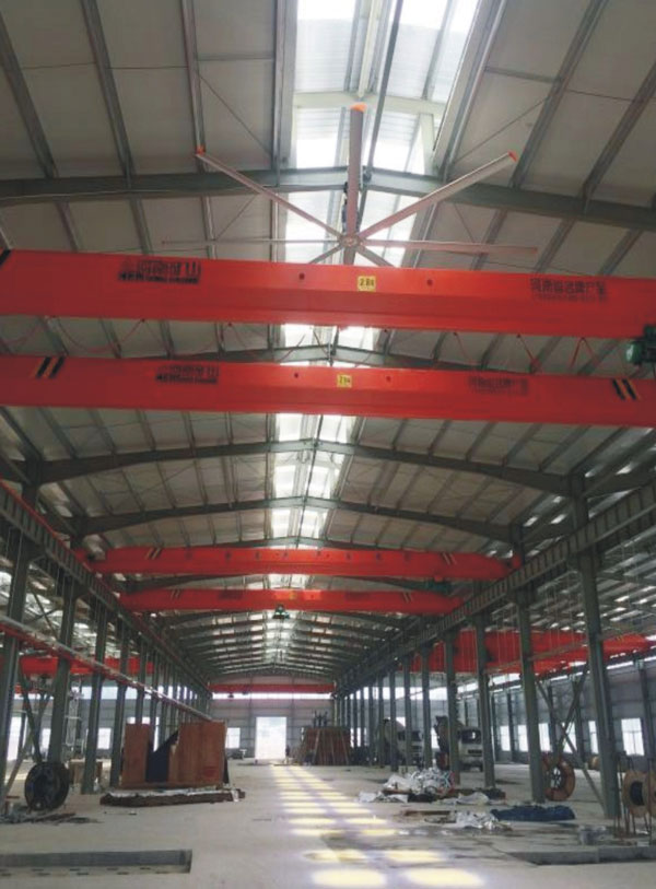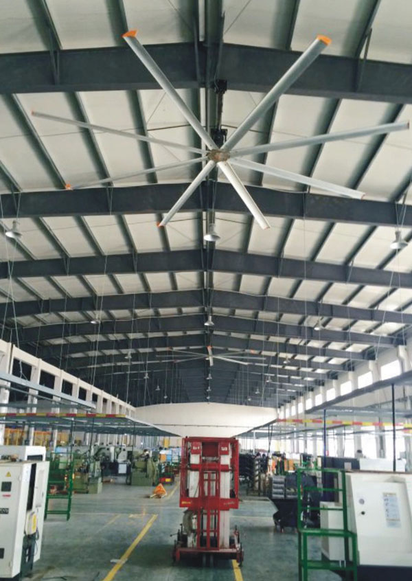 我公司生產的大型工業吊扇直接懸掛在廠房屋梁下,風力柔和,能加快車間空氣流通,有效降低車間內溫度,改善車間空氣環(huán)境質量,有利于員工的身體健康。